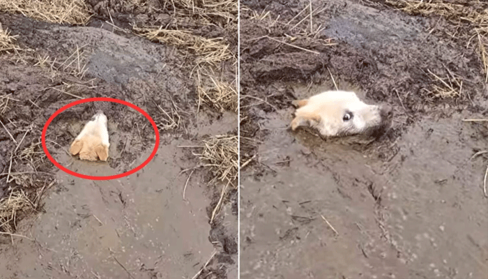 A Second Chance at Life: Stray Dog Saved from Swamp by Kind Farmer
