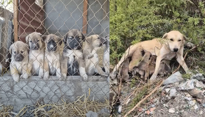 The puppies, clearly famished, were attempting to nurse, but their mother was unable to produce enough milk due to her own hunger. Witnessing this heart-wrenching scene, the rescuer felt deeply moved.