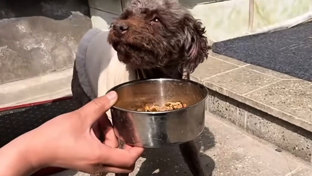 Although the rescuer gently tried to soothe her, the dog, having been hurt too many times, was reluctant to trust and walked away. Refusing to give up, the rescuer followed, continuing to talk to her and offer food. After two hours, the dog’s defenses finally dropped. She approached the rescuer and quickly devoured the food she was offered, starving for care and nourishment.