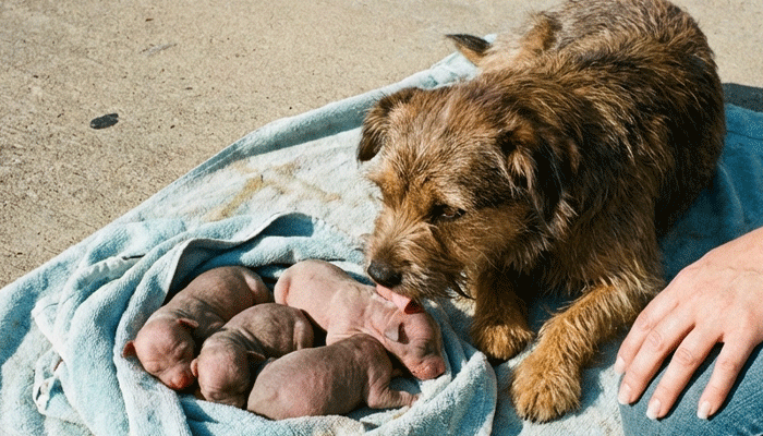 At Carla’s house, we set up a whelping box in the spare bedroom. Towels, a heating pad on low, a shallow water dish. Bean walked into the box, circled once, and lay down on her side. Carla placed the three puppies against her belly. They latched within seconds, tiny bodies kneading and pulling with a fury that seemed impossible for their size.Dogs