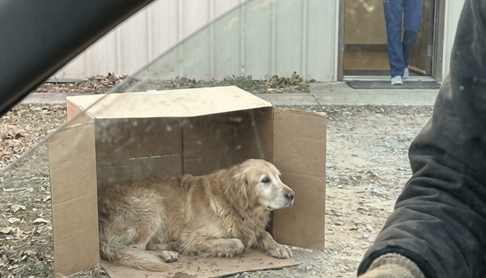 The stray dog lay curled inside a torn cardboard box behind the clinic, growling at anyone who came close—even though it was empty.