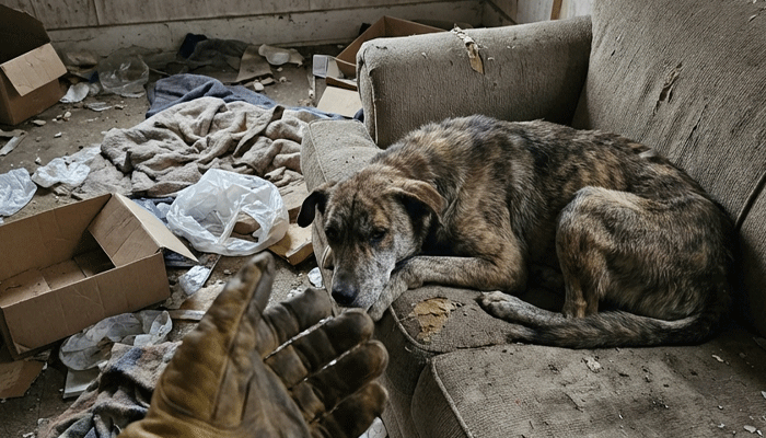 The stray pit bull lunged weakly at anyone who stepped inside the abandoned house, teeth bared, body shaking—“Don’t go near it”—but why would a dying dog still try to protect something?