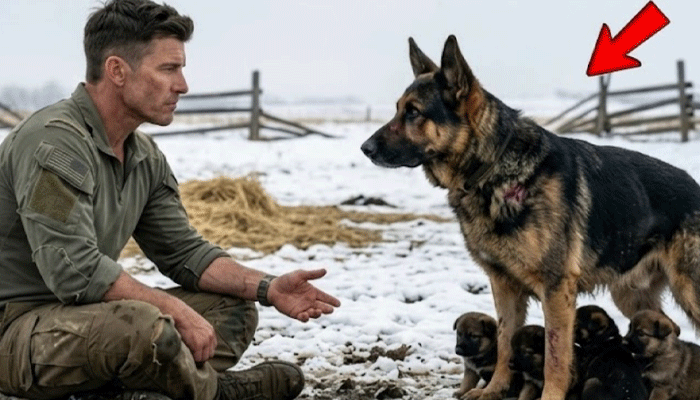 Easy, he said again, softer this time. I’m not here to take anything. The German Shepherd watched him, not like an animal, like a sentry.