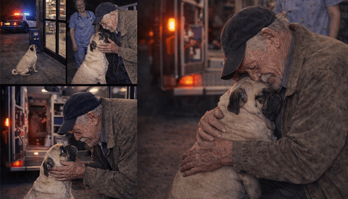 Benny was no ordinary stray. Three days earlier, his elderly owner, Mr. Henderson, had collapsed on that very sidewalk, struck by a sudden heart attack. The ambulance had taken him away, leaving Benny behind. Alone, the pug had refused to leave. Rain, cold nights, strangers trying to carry him off—none of it had deterred him. He remained, waiting, believing that his person would return.