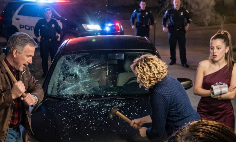 Two officers stepped out of the patrol car and looked at the shattered windshield, the dented hood, and the tire iron still clutched in my father’s hand.