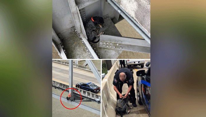 Once the harness was secure, Ryan carefully tossed the rope back up to a waiting police officer on the bridge’s upper level. The officer grabbed the rope, and with a swift pull, the dog was lifted to safety. The moment she was back on solid ground, something miraculous happened. The dog, who had been so still and trapped just moments before, began walking immediately and wagging her tail. It was a sign that, against all odds, she had survived her terrifying ordeal. “It was absolutely a first for our crew,” Ryan later remarked.
