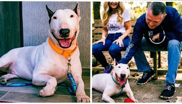 But then came Frank and Carla Spina, a couple from Parkland, Florida, who had 33 years of experience with bull terriers. After seeing Trooper’s story on the news, Carla turned to Frank and said, “We have to go get him.” Despite warnings from the shelter that Trooper was terrified of men and that it might not work with Frank, the couple didn’t hesitate. They knew they had to try.