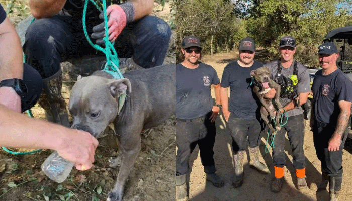 Back on solid ground, Athena, overwhelmed with gratitude, was seen cuddling with her rescuers. Captain Zach Helvey, one of the firefighters involved in the rescue, remarked that the dog was “thanking us” for her freedom and safety. The joy and relief were palpable among everyone involved, but the story wasn’t over yet. Athena’s family, who had feared they had lost their dog forever, were overjoyed when they were finally reunited with her.